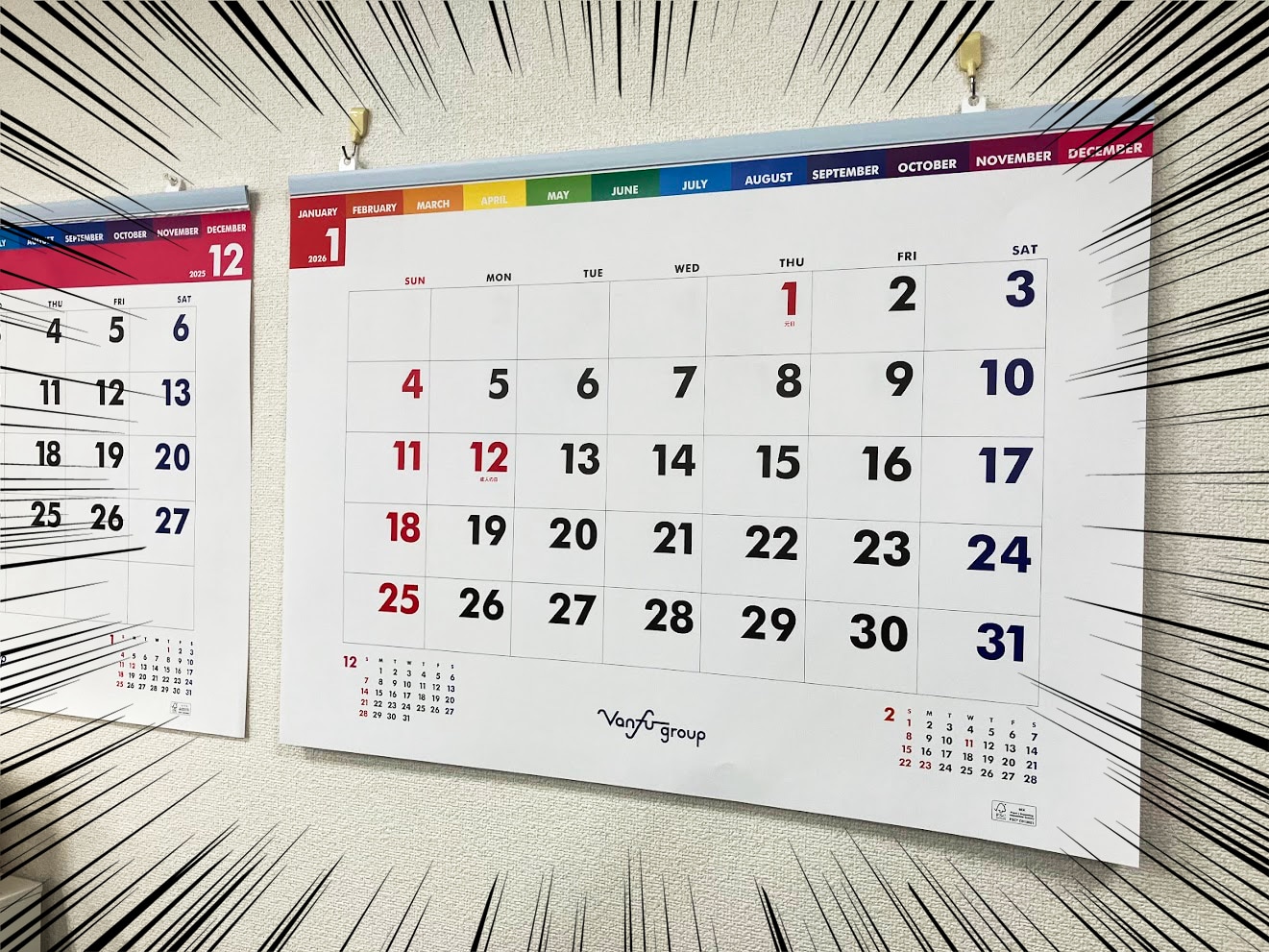 そこでバンフーでは、毎年ご好評いただいている 「特大サイズのオリジナルカレンダー」 を活用しています。