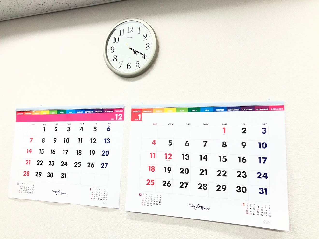 大きなカレンダーに大きな会社のロゴ。毎日視界にバンフーのロゴが入ってきます。