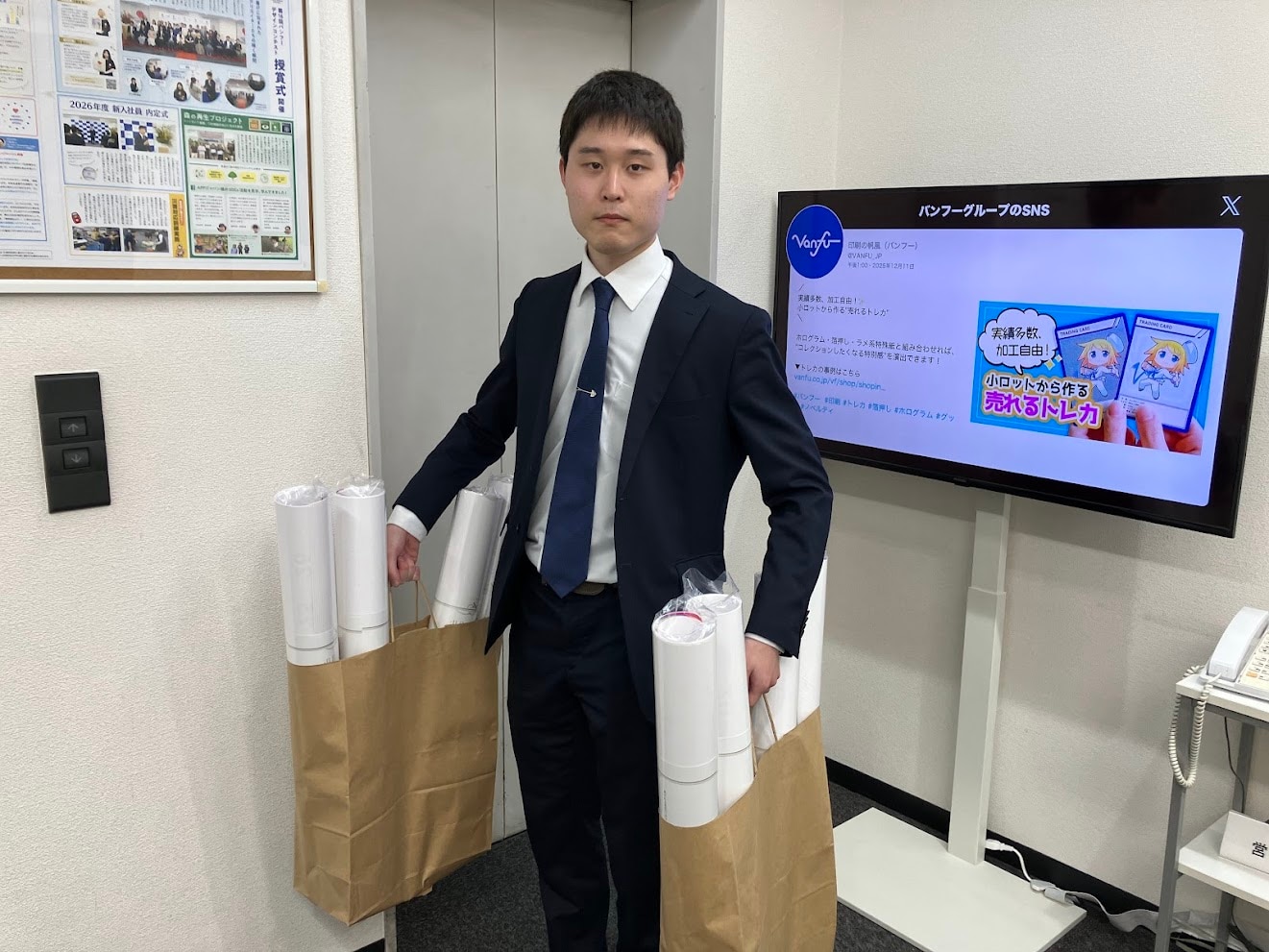 年末のこの時期、街中では同じように紙袋にカレンダーをいれた他社営業マンたちを見かけます。そんな中、カレンダーを運ぶ姿だけでも他社を圧倒します。