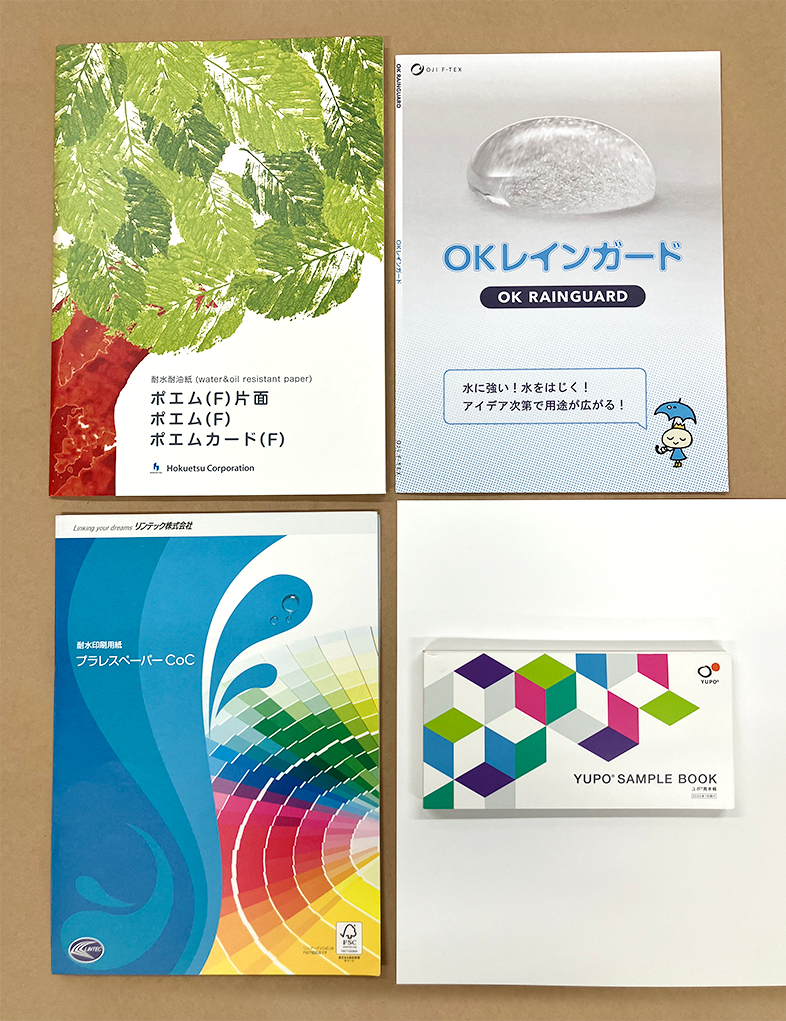 バンフーでは、今回紹介した4種類の耐水素材をはじめ、多数の特殊紙・合成紙を扱っています。