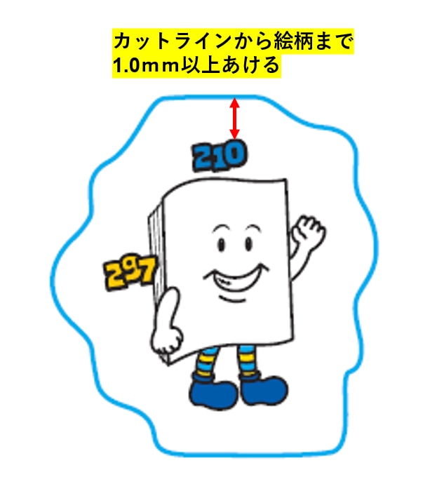 等倍での縮小後、まずはカットラインから絵柄までの間隔を1.0mm以上あけます。