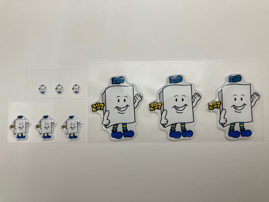 一番小さなA4くん(8×8mm)も思っていたより絵柄がつぶれず、小さいながらも存在感を出しています。