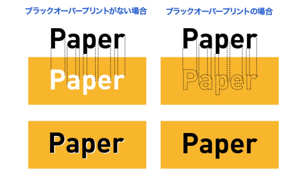 小さい黒文字などをノセにすることで、版ズレ(見当ズレ)による白フチを防ぐことができます。