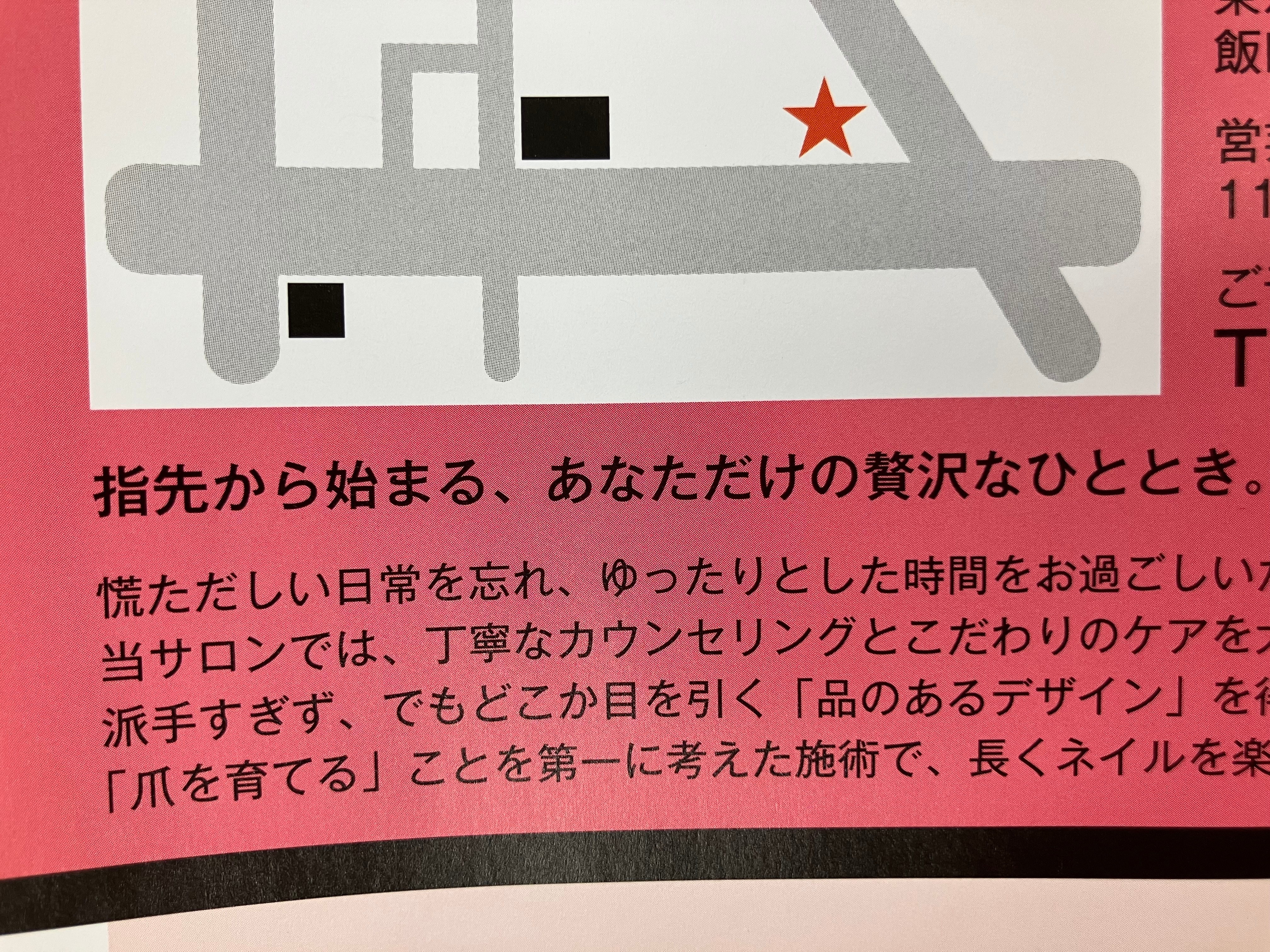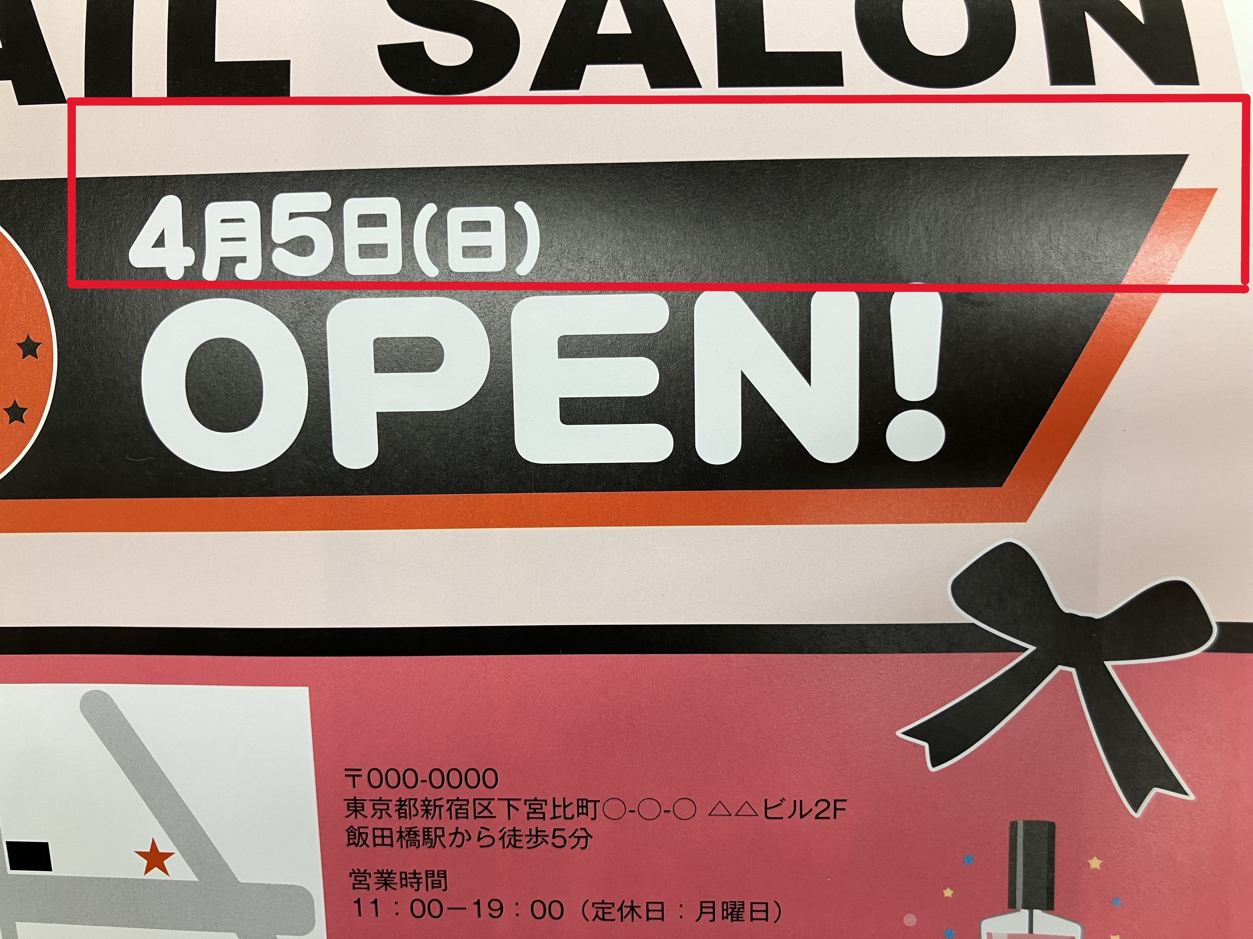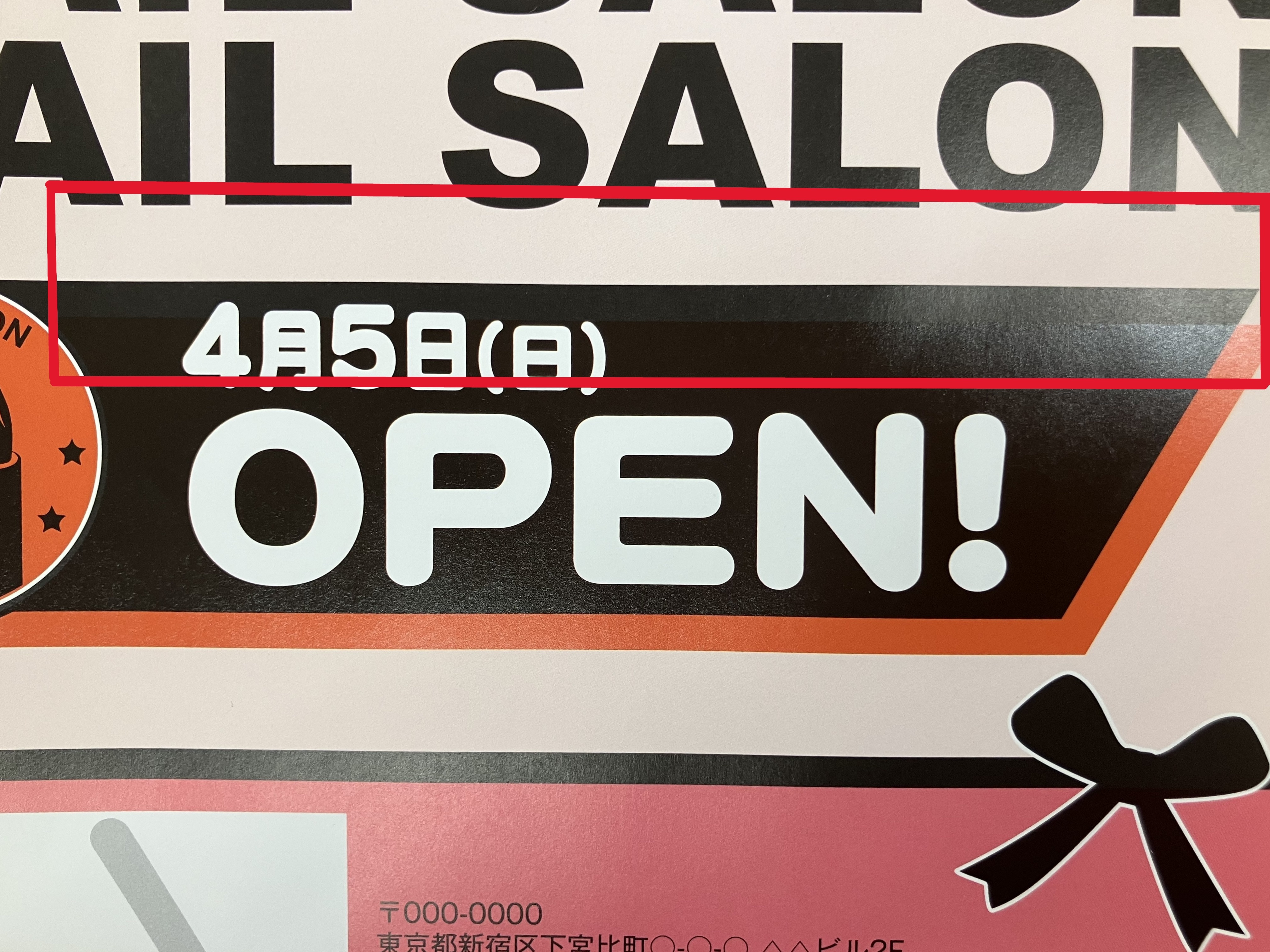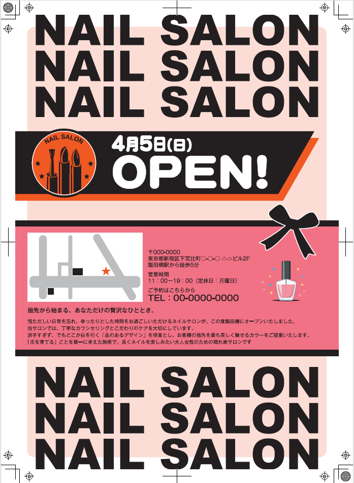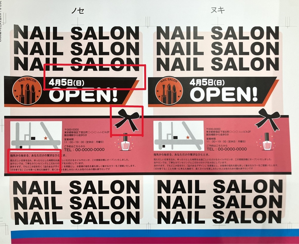 このネイルサロンOPENのイメージチラシを刷ってみます。