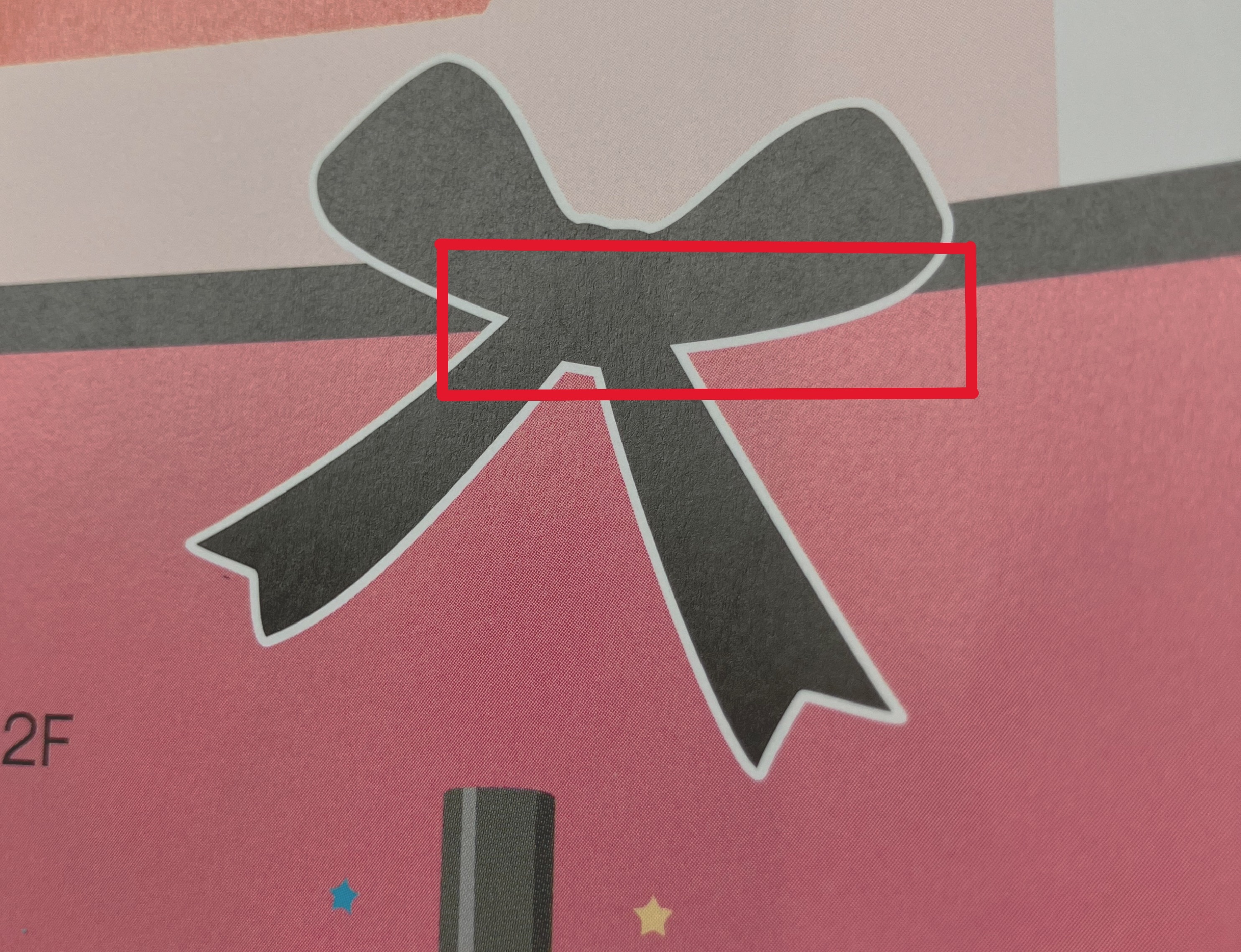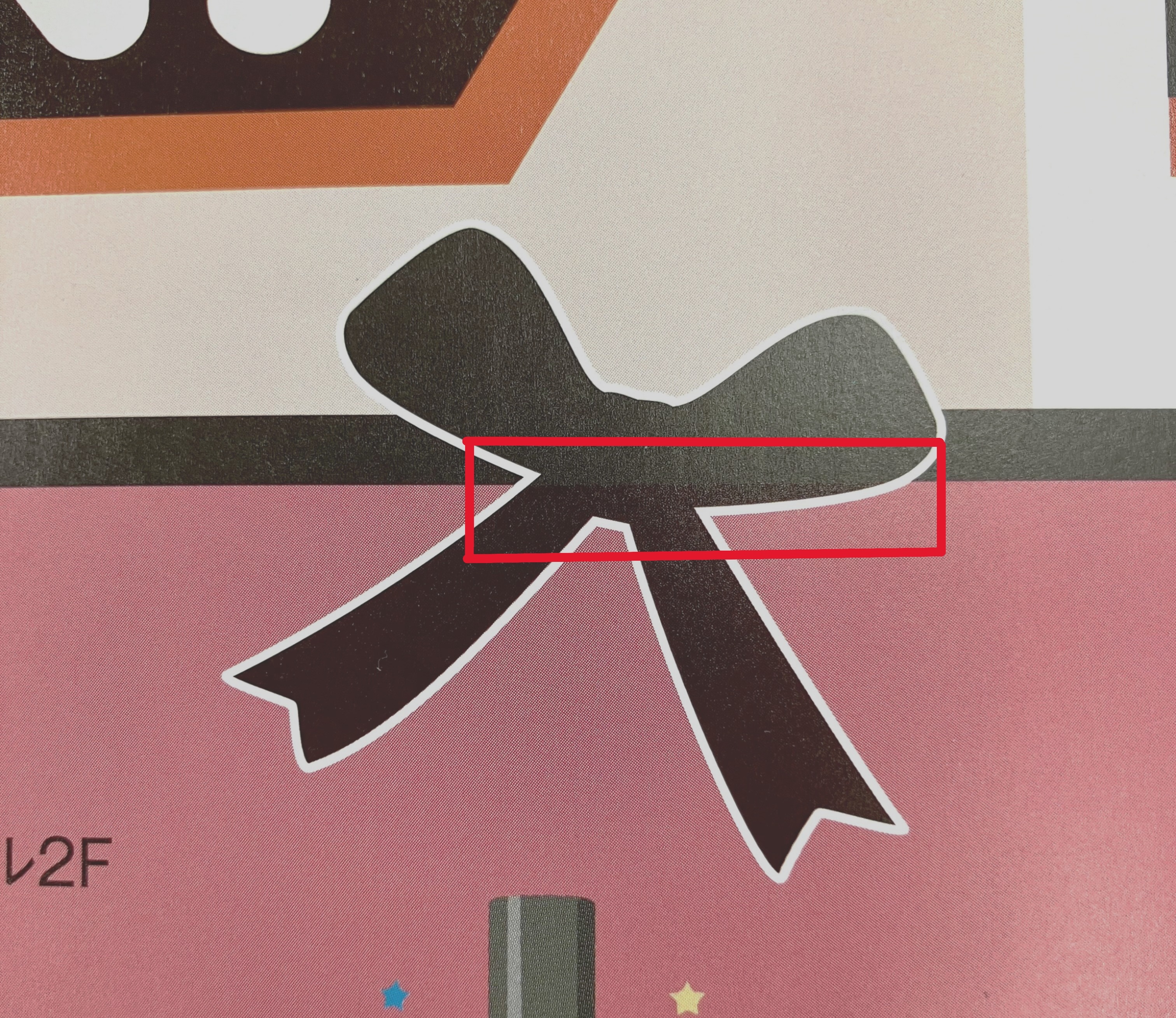 オフセット印刷では、CMYKの版を重ねて印刷します。版にわずかなズレが起きると、色の境界に白い隙間が見えることがあります。