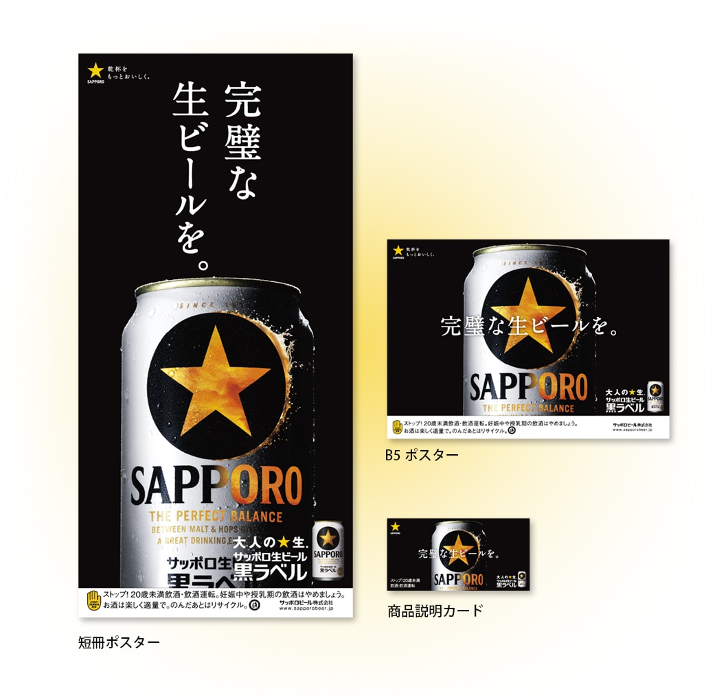 サッポロビール株式会社様の店頭プロモーションに使用される短冊ポスター・B5ポスター・商品説明カードの色補正および印刷を担当しています。