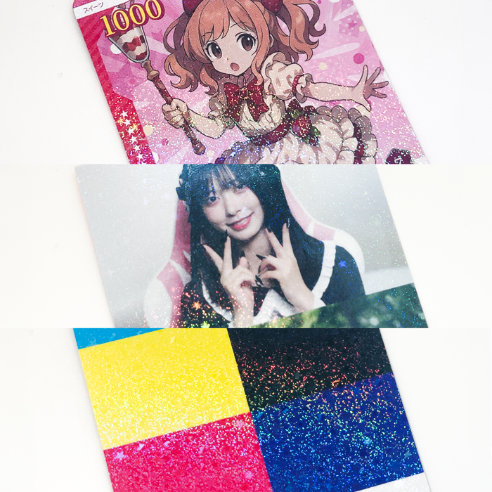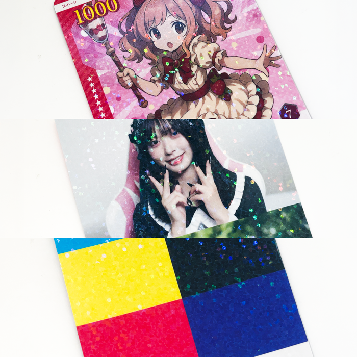 ホログラム加工を追加すると、光の当たり方で表情が変わる“特別感”が生まれ、限定カードやレアカード表現に最適です。