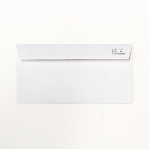 森林認証パルプと古紙パルプをバランスよく配合して作られた用紙で作成した封筒です。ふた(ベロ)に予めFSC®森林認証マーク及び説明文が印刷されています。 角2と長3はベロ部分(フタ部分)への印刷も可能です。