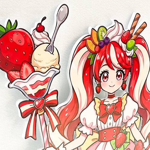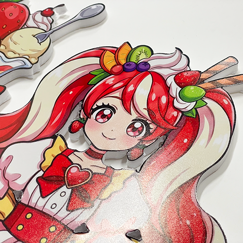 推しの生誕祭やライブ会場に贈るフラワースタンド(フラスタ)において、白い余白は意外と目立ってしまうもの。当店のフチなし加工なら、お花の世界観を壊さず、キャラクターが花に埋もれているような美しい一体感を生み出します。