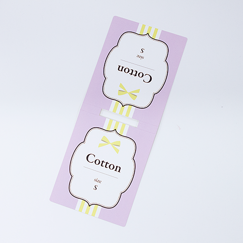 ハンガークリップに取りつけるカードタイプのPOP。シンプルな長方形がデザインしやすく、売り場でもよく目立ちます。付け外しが楽なのも嬉しいところ。デジタルオフセット印刷のため、写真もベタもムラなく美しい仕上りです。