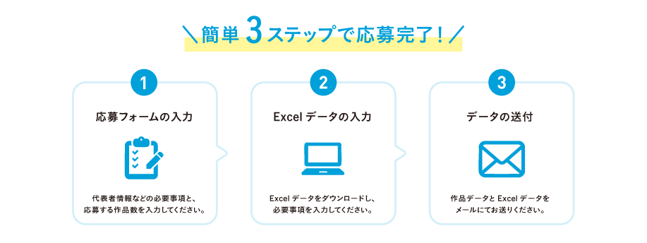 ※1作品あたりのデータサイズは3MB以内にしてください。