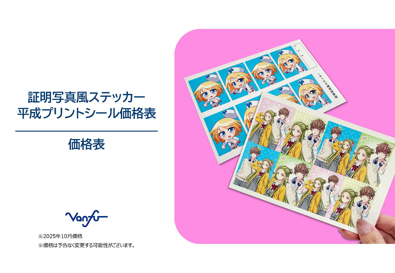 証明写真風ステッカー・平成プリントシール価格表