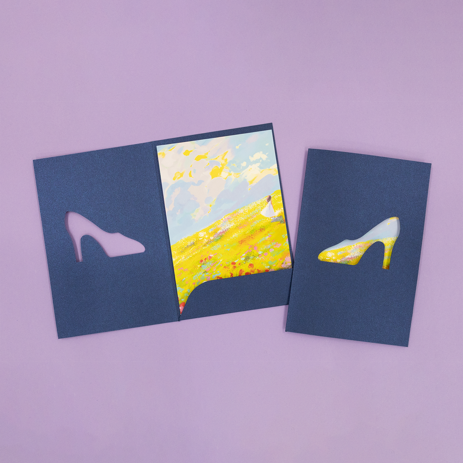 印刷をしなくても仕様で魅せられる紙製ノベルティ。複数種のポストカードを収納するのにぴったりなポケットファイルです。