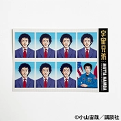 『宇宙兄弟』作者小山宙哉ファンクラブで販売されている証明写真風ステッカーです。PETラミ50♯にして、より証明写真に近く厚く、写真部分のハーフカットなしにすることで本物の証明写真と同様自由にカットできるようにしてます。