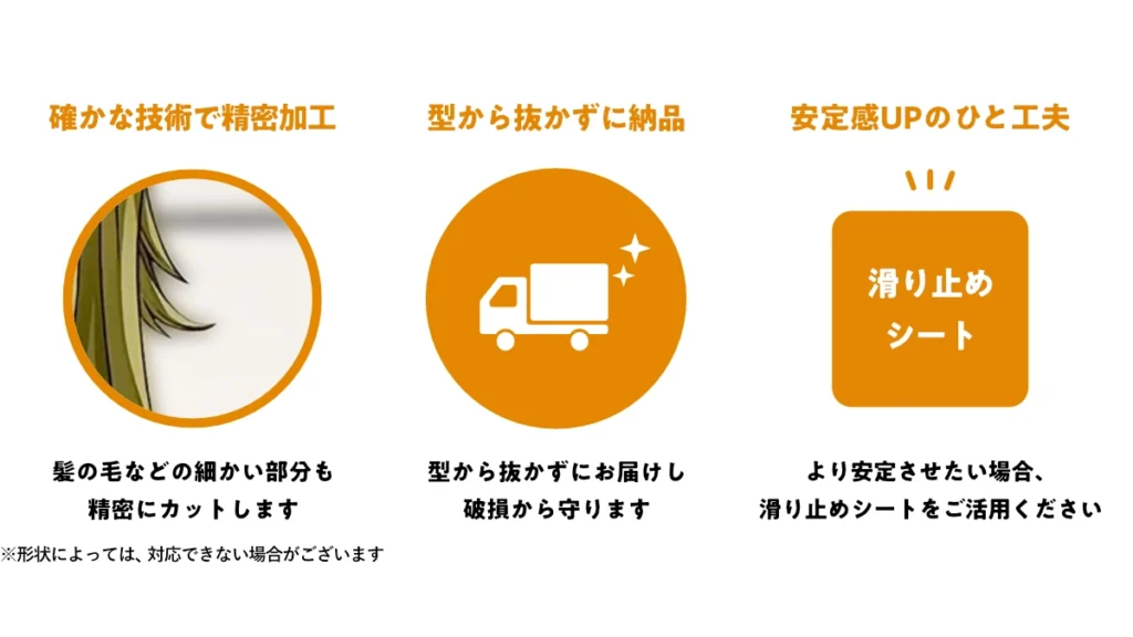 精密にカットするため、髪の毛の先端や小物など、繊細な部分がある場合はご相談を。