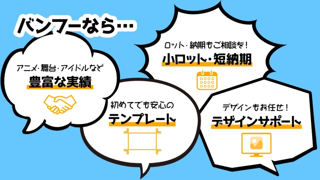 「このイベントに向いている?」「加工でどれくらい差が出る?」など、ラフな段階でもお気軽にご相談ください。