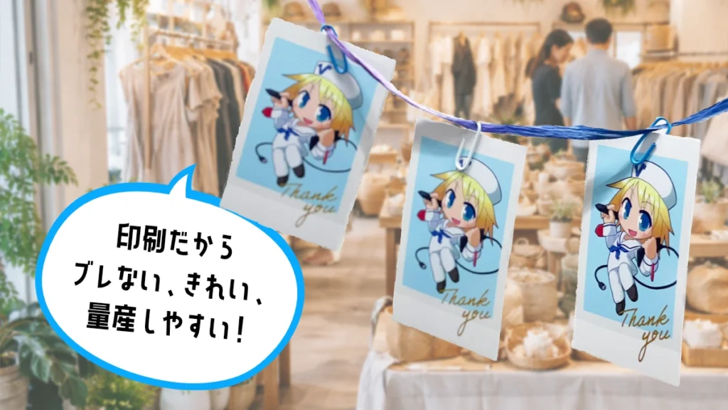 チェキ風なのに、印刷だからブレない・色がきれい・量産しやすい のが魅力。