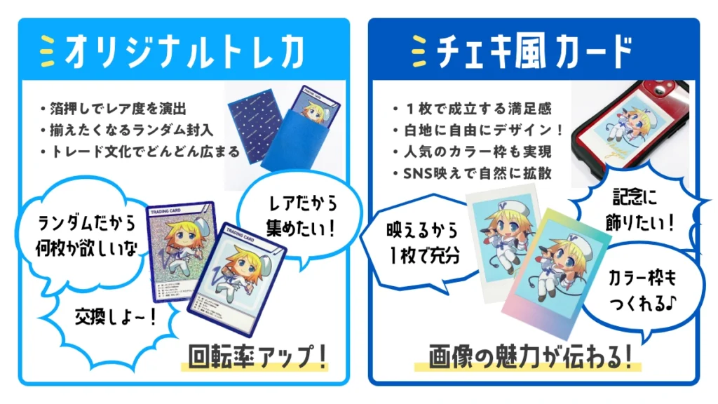 - トレカとチェキ風カード、どう使い分ける?
