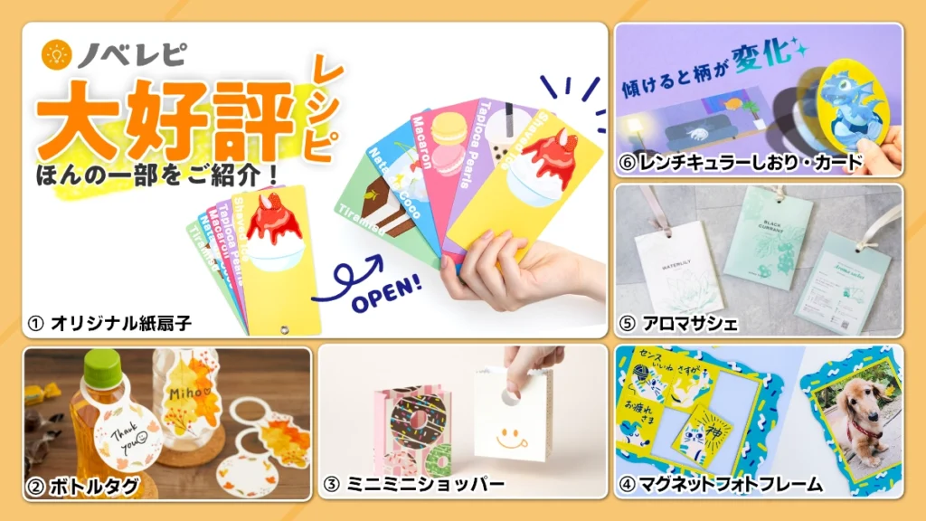 ノベレピ最新号で、作りたい特典のヒント探しから始めましょう。気になるアイテムは、店頭でも実物サンプルを確認できます。