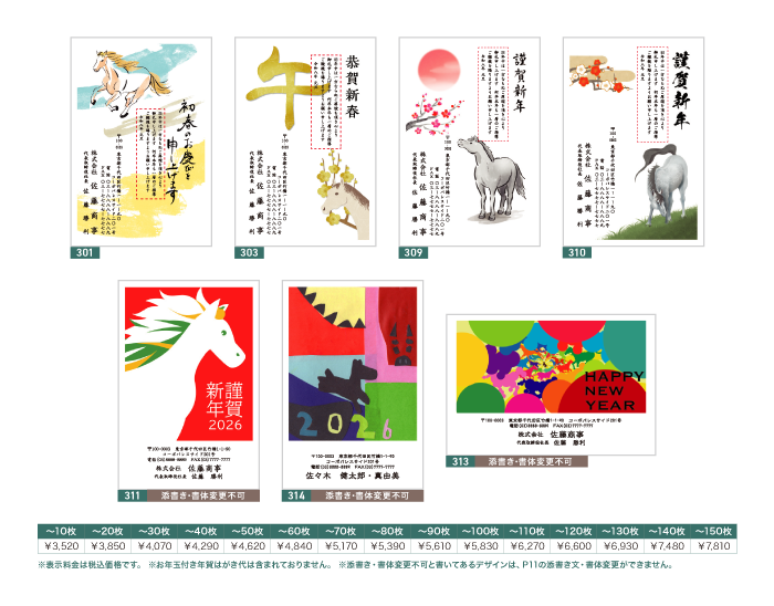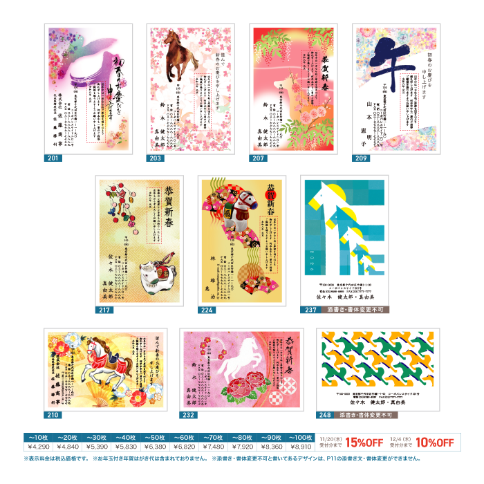 デザイン・添え書き・書体を選ぶだけで、簡単に年賀状が完成。