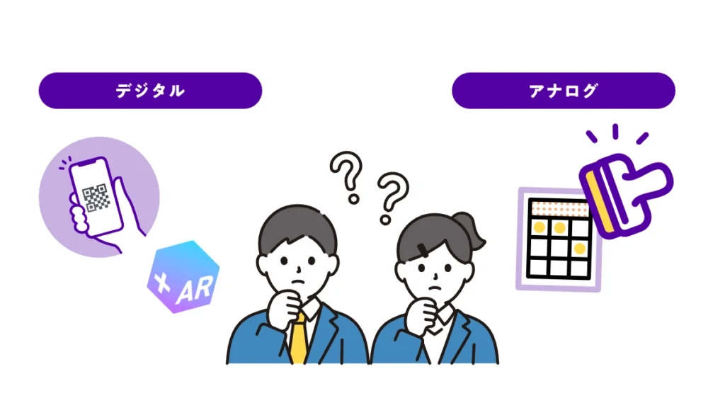 「つく丸」を等身大パネルにしたら、デジタルとは違ったインパクトを出せたかもしれません。どちらが良い悪いというわけではなく、状況や対象者によってうまく使い分けて運用するとさらに文化祭が盛り上がりそうですね。